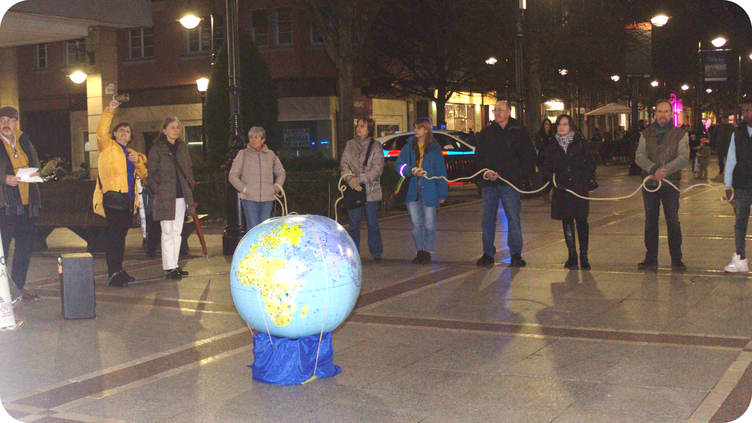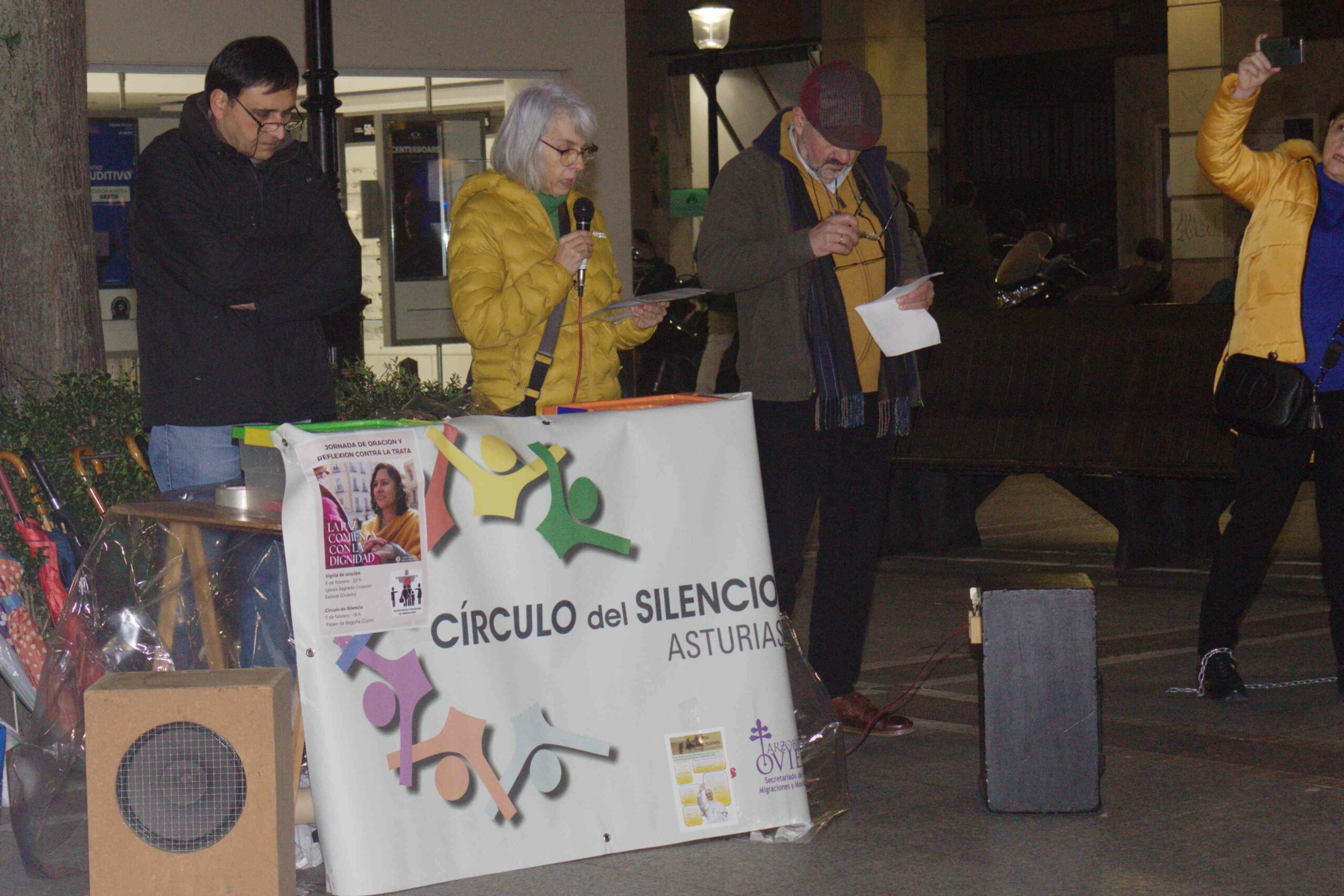 Al día siguiente, el sábado 7 de febrero se hizo un Círculo de Silencio en el Paseo de Begoña de Gijón, con una estructura similar a la vigilia pero en la calle, en la vía pública, para que sea un grito silencioso de solidaridad contra un hecho que creíamos que era propio de otros tiempos pero que en realidad no nos ha abandonado. Recordamos a las víctimas con fines de: